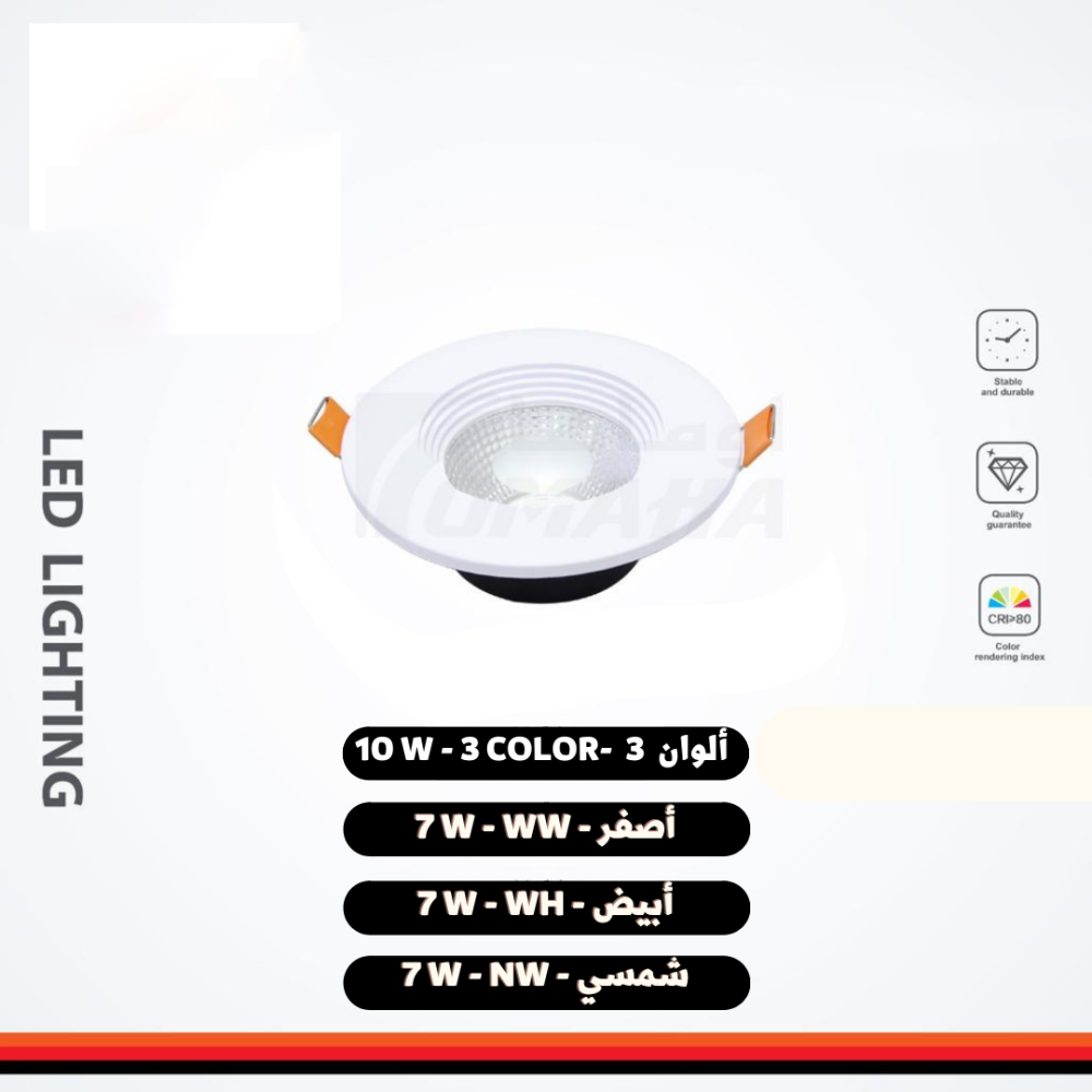 إضاءة مميزة من داون لايت 7 وات تضمن لك شدة ضوء مثالية مع أقل استهلاك في الطاقة الكهربائية.