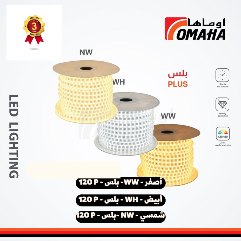 - يأتي شريط الإنارة مع ضمان لمدة 3 سنوات، مما يضمن لك الاطمئنان والثقة في جودته وأدائه.