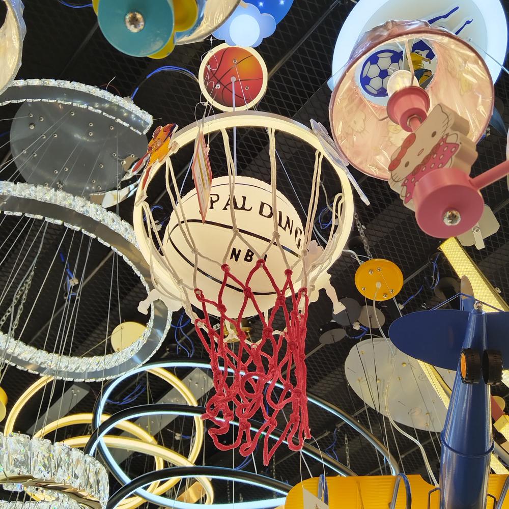نجفة معلقة مصنوع من مواد عالية الجودة، بتصميم على شكل كرة سلة بألوان جذابة. يجمع بين الرياضة والجمال، ويعتبر قطعة ديكور فريدة من نوعها.