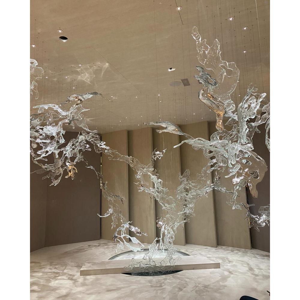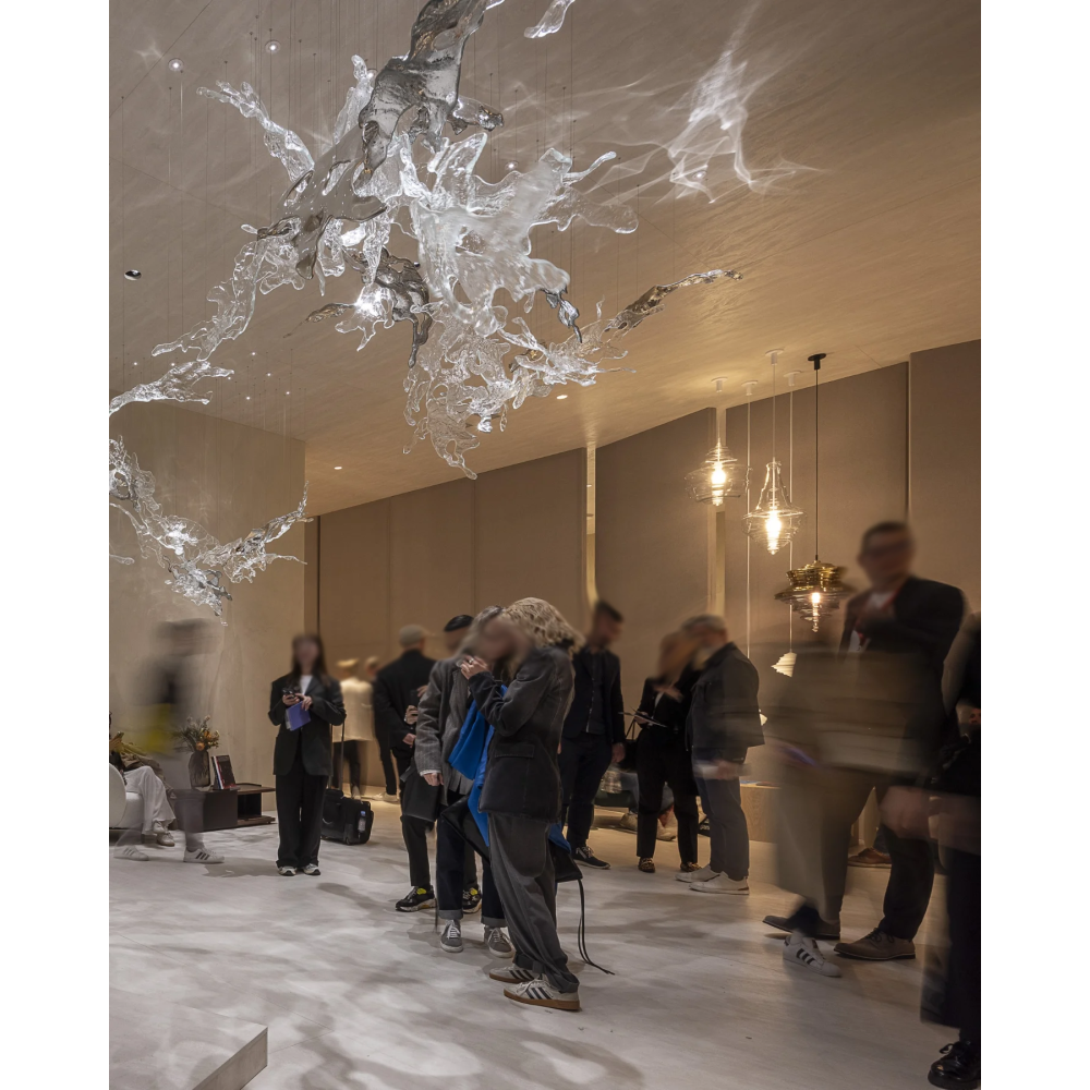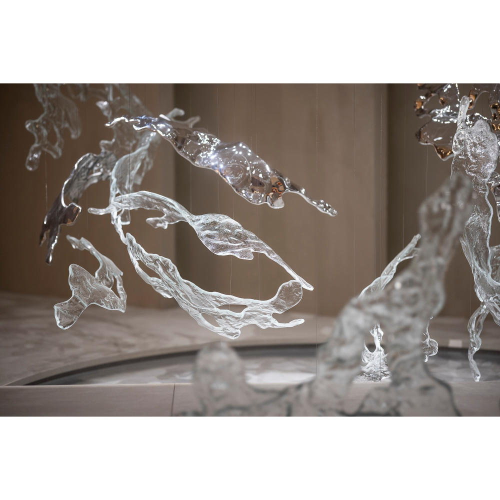 نجف المياه الزجاجية يضيف لمسة من الفخامة داخل الغرفة ياتي النجف مفصل كل قطعة لوحدها , يتم تجميع النجفة بأشكال واطوال متعددة حسب رغبة العميل , مع أمكانية تفصيل قاعدة تثبت على السقف بحالة عدم وجود جبس في السقف بقيمة منفصلة حسب مقاسها ولونها. (لتفاصيل أكثر يمكنك التواصل معنا عبر الواتس اب).