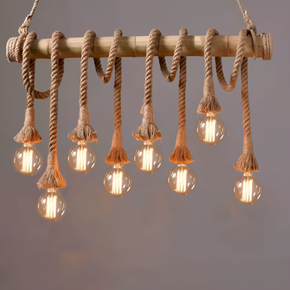 مصباح معلق بتصميم ريفي عصري: مصنوع من الخشب والخيش، يضفي لمسة دافئة وعصرية على أي مساحة. يتميز بتصميمه الفريد مع عدة مصابيح كروية معلقة على حبال، مما يوفر إضاءة ناعمة وديكورًا جذابًا. مثالي للمطابخ وغرف المعيشة والممرات.