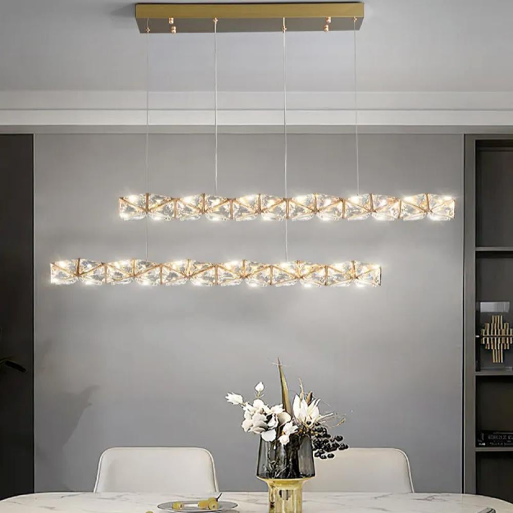 ثريا كريستالية أنيقة: تصميم فريد يجمع بين الأناقة والحداثة. تتألق الثريا بأضوائها المتلألئة التي تنعكس على الكريستال الشفاف، مما يخلق أجواءً ساحرة في أي غرفة. مثالية للمساحات الواسعة وتضيف لمسة من الفخامة إلى أي ديكور داخلي. تتميز بتصميمها الجذاب الذي يضفي حركة وحيوية على المكان. مصنوعة من مواد عالية الجودة لضمان المتانة والعمر الطويل.