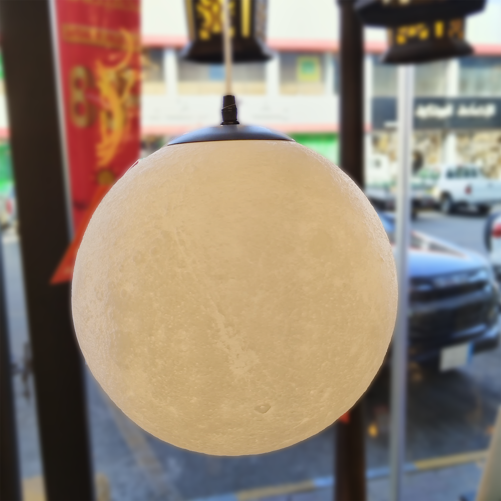 مصباح معلق على شكل قمر بديع، تصميم عصري يضفي لمسة من السحر على أي غرفة. إضاءة دافئة وخافتة تخلق أجواءً هادئة ومريحة.