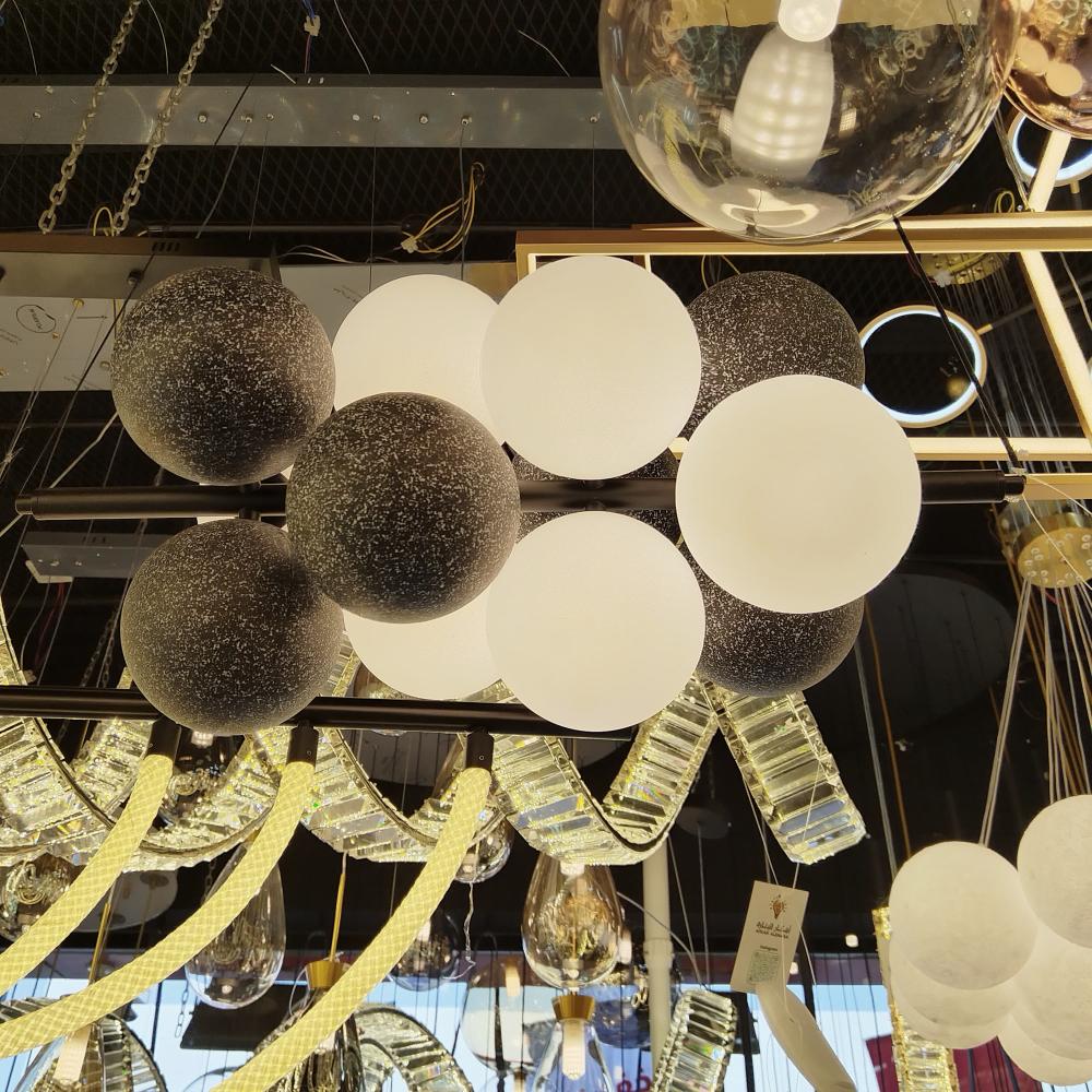 ثريا حديثة تجلب الأناقة إلى منزلك! تتميز بتصميم دائري عصري وكرات فايبر بيضاء ورمادية متناوبة. مثالية لغرفة الطعام أو الصالة أو غرفة النوم. توفر إضاءة كافية ودافئة. مصنوعة من مواد عالية الجودة وتأتي مع جميع الملحقات اللازمة للتركيب. تصميم عصري يضفي لمسة من الرقي على أي ديكور. استثمر في قطعة فنية عملية وعصرية!